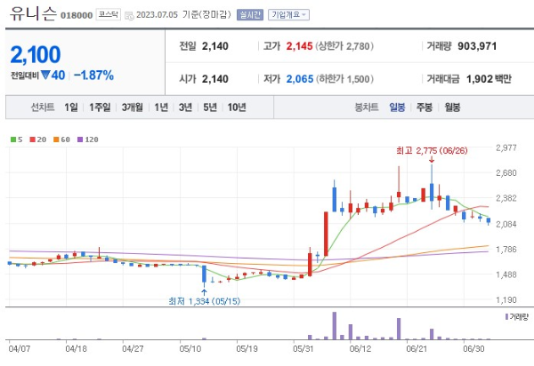 4. 유니슨 (풍력 발전 테마주)