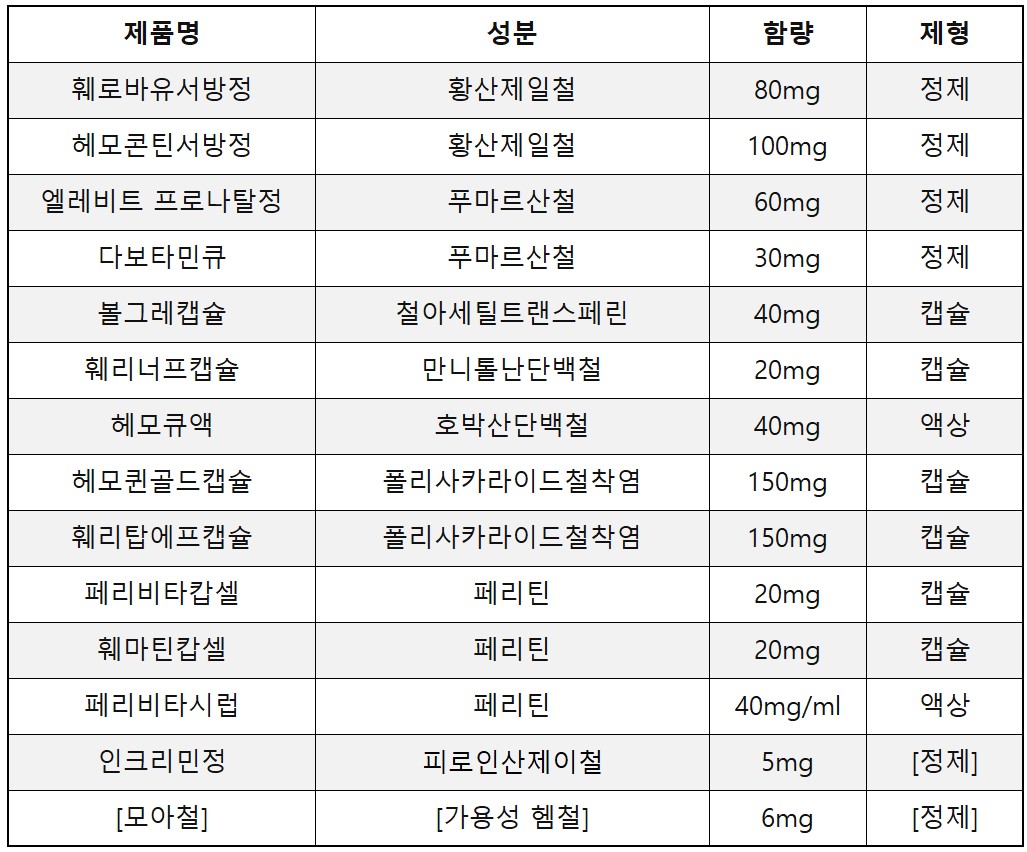 철분제 종류와 함량 정리