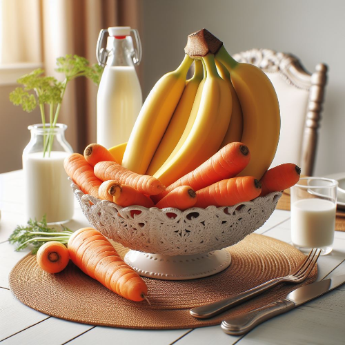 바나나는 당근과 잘 어울리는 과일 중 하나입니다. 바나나는 달콤하고 부드러운 맛과 풍부한 식감이 매력적인 과일로, 칼륨과 세로토닌이 풍부합니다. 바나나는 당근과 함께 먹으면, 칼륨의 흡수를 증가시키고, 혈압을 조절하고, 신경을 안정시켜줍니다. 바나나에는 식이섬유도 많이 들어있어, 변비나 고혈압, 스트레스 등에도 도움이 됩니다. 바나나와 당근을 갈아서 주스로 만들거나, 샐러드나 스무디에 넣어서 먹어보세요. 당근과 바나나의 조합은 에너지 충전입니다.
